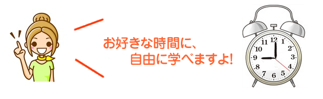 一日に2時間まで受講できます。都合の良い時間に、好きな時間に、ご自分のペースで学習できますよ!下記に時間割のお時間でご都合の良い時間に受講くださいね。ご不明な点がございましたら、お気軽にお問い合わせください。